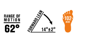 Ski/Walk mode: SpeedLock MLT, ~ 62° range of motion